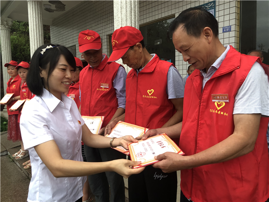 中保镇组织员何建琼为互助养老服务队员颁发荣誉证书