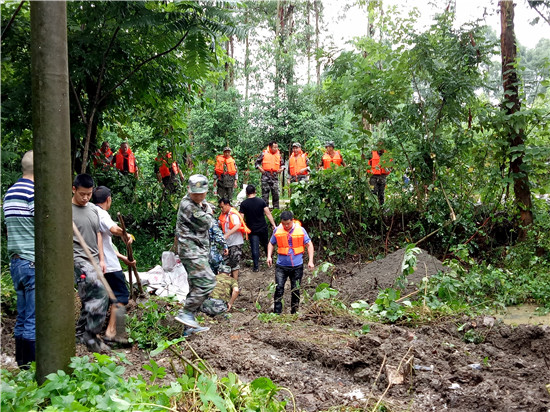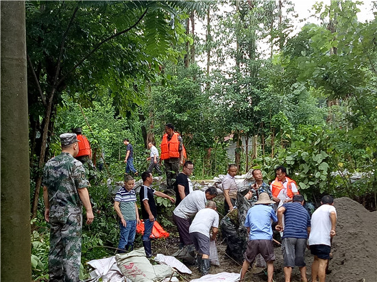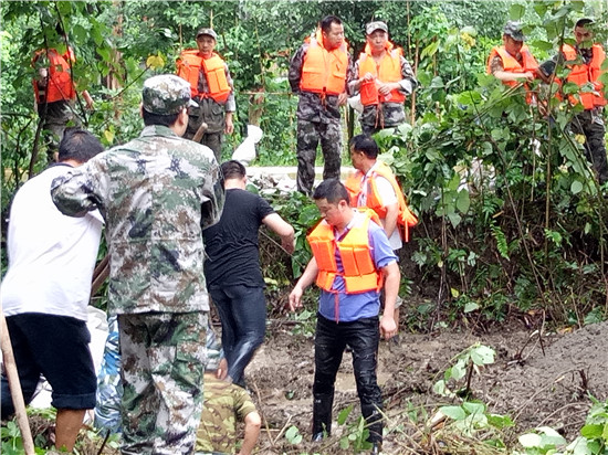 四川新闻网眉山7月3日讯(帅勤 图/文)灾情就是命令!7月2日凌晨,青神县青城镇遭受强降雨袭击,部分村民房屋地基浸泡,屋内进水,房屋安全受到严重威胁,同时,位于王坝社区与黑龙镇交界处的鸿化堰南干渠水面直逼上岸,随时面临决堤的危险,危害周边群众的人生财产安全。青城镇政府得知情况,启动应急预案,快速出击,组织社区党员干部和民兵应急分队60多人的抢险队伍,第一时间赶到现场救灾,快速分工。一部分人利用铲子和锄头装好沙袋,一部分人涉入水中传递沙袋至等待在另一岸的救灾人员手中。与此同时,县、镇领导班子冒着大雨及时赶到现场,和救灾人员一起奋战在一线。长达4小时的抢险,救灾队伍用双手保护住了人民群众的人身财产安全。