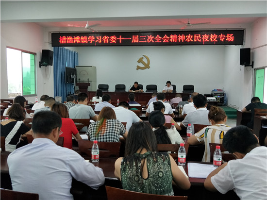四川新闻网眉山7月16日讯(黄平 文/图)7月16日,洪雅县槽渔滩集中学习宣传省委第十一届三次全会精神,各村农民夜校教师、管理员近80人参会。