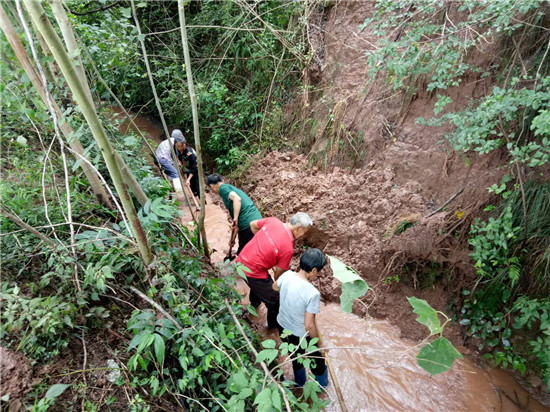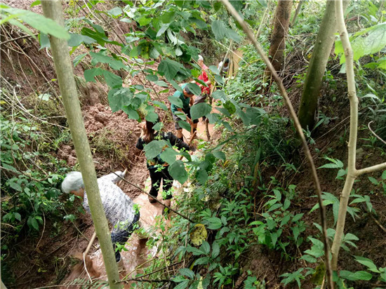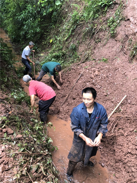 “不行,我必须去看看” 詹贤均对老婆说道。多年来担任地质灾害监测人的直觉告诉他,地质灾害点可能出了问题。披上雨衣、穿上筒靴,打上电筒,责任心驱使他迅速赶到地质灾害点。果然,詹贤均一到现场就发现,在地质灾害点山体下的水沟里,多处已经被暴雨冲刷下来的泥土堵塞,大量的雨水囤积在沟内,不断冲击着山体,山体随时有出现滑坡的可能。在此危难关键时刻,詹贤均立即向村委报告,同时迅速组织地质灾害点的农户转移。村委会收到詹贤均的险情报告后,立刻组织10余名群众到达现场进行抢险自救。