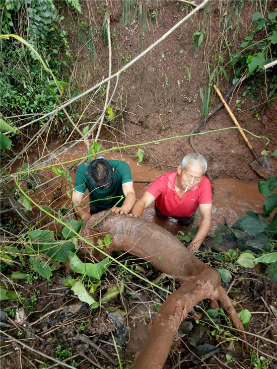 打着电筒,用铁铲,用锄头,詹贤均冒着瓢泼大雨和生命危险冲锋在前,带领着10余名群众奋战在抢险第一线。从凌晨1点到下午5点,终于将水沟里的八个堵塞点约100余方泥土全部清除,伍仟余方积水被引流,成功的保护了群众的生命财产安全。