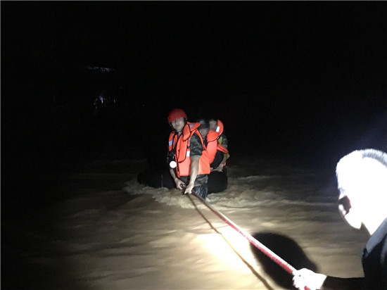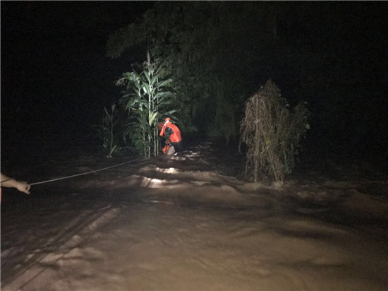 四川新闻网眉山7月20日讯 7月19日23点54分,洪雅县公安消防大队河坝中队接到报警称洪雅县中山乡金花村四组有两人因涨水被困,河坝中队出动两车10人赶赴现场处置,7月20日0点15到达现场。