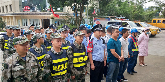 四川新闻网眉山7月26日讯(李剑雄 文/图) “报告指挥长,接到地质灾害监测员紧急报告,我镇永盛村陈河桥地质灾害点发生滑坡,22名群众和游客需要紧急转移。”接到分管国土副镇长汇报,洪雅县瓦屋山镇镇长、防洪度汛指挥部指挥长李敏杰立即指示:“全体人员按照应急预案,立即赶赴现场开展救援。”