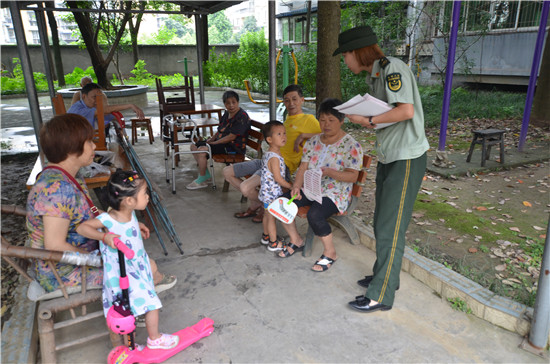 四川新闻网眉山8月9日讯(张意捷 文/图) 为全面普及消防安全知识,进一步提高辖区居民群众的消防安全意识,加强火灾防控力度,有效预防火灾事故的发生,8月7 日,东坡区消防大队深入辖区社区居民院落广泛开展消防宣传活动。