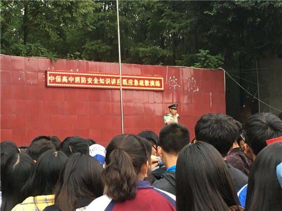 四川新闻网眉山9月14日讯(余娟 文/图) 为进一步普及校园消防安全知识,增强广大师生火灾预防自救能力。9月13日下午,洪雅消防大队消防宣传人员走进洪雅县中保高中,为该校几百名师生上了一节消防安全教育课。