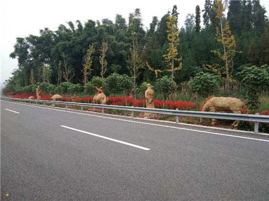 据负责稻田艺术图案管理的东岳镇八面村10组组长车玉红介绍,自从村里打造了稻田艺术,每天前来观看的游客不下几百人,节假日要达到几千人,使原来冷清的村庄开始热闹起来,村民们心情也更加高兴了。 据悉,今年洪雅县、乡两级政府加大了对景点基础设施的投入,目前已新建了停车场,种植草坪、花木、卫生间,重点打造了供游客观看、摄影的观景台,一些办公用房和步行栈道已经投入使用。站在观景台才发现,今年呈现的主题是:洪雅、乡村振兴、吉祥动物、瓜果、树木等图案,放眼望去,整个图案大气磅礴,浑然天成,就连作品题图印章也清晰可见,简直不敢相信这是采用不同色彩稻谷组成的大手笔画作。
