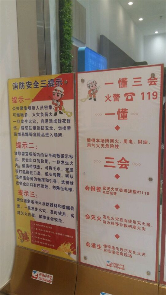 同时,还有火灾逃生自救十二招、逃生要诀和消防标识等内容,时刻提醒广大市民——为了您的人身安全,请遵守消防安全提示。大队利用监督检查有利时机,积极开展“三提示”活动,向消防安全重点单位等人员密集场所开展主题消防宣传活动,免费赠送印有消防安全“三提示”内容的宣传画、电子宣传图片等资料,要求单位要将消防安全“三提示”宣传图片张贴在显眼位置。同时积极指导网吧、商场、超市等人员密集场所开展宣传活动,张贴有针对性的消防安全“三提示”标志,提高消防宣传面,扩大消防宣传效果。