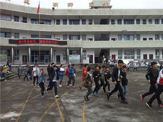 中山乡初级中学校坚持每期多次应急演练,学生们在演练中提高了防震意识,受到了安全教育,达到了预期的目的。