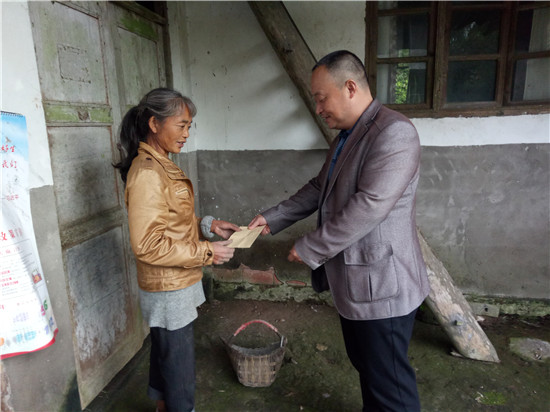 四川新闻网眉山10月18日讯(张琴 文/图) 2018年10月17日是我国第5个扶贫日,也是第26个国际消除贫困日,洪雅县委群工部积极组织干部职工捐赠物资,在“扶贫日”前往东岳镇观音村开展送温暖慰问活动,送去捐赠款和扶贫宣传挂历。