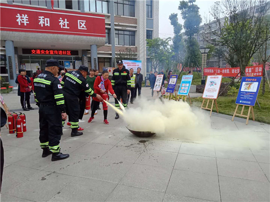 四川新闻网眉山10月19日讯(杨君 周红霞 图/文)为进一步加强社区居民的消防安全意识,提高居民火灾的应急扑救处置能力,白马镇在消防安全工作中结合实际,增强居民技能培训和模拟体验。2018年10月18日,白马镇联合眉山市应急志愿者协会组织祥和社区党员干部、社区居民在祥和社区广场开展以“人人关心消防事,家家户户保平安”为主题的安全知识培训及消防演练活动。