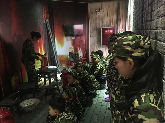 活动中,针对孩子们年龄偏小、活泼好动的特点,大队宣传人员为萌娃们带来了一堂生动的消防知识盛宴,采用提问的寓教于乐的方式,深入浅出讲解了小孩玩火、玩水、乱玩鞭炮、触摸电器设备等现象的危害性,比如“怎样防止火灾的发生”“发生火灾怎么办”、“如何报警”、“烟雾较大的情况下如何利用毛巾逃生”等。同时,为了调动萌娃们参与消防的积极性和趣味性,通过穿戴服装、集合站队、讲解消防员日常培训内容、接到报警赶赴火场、利用水枪灭火、收队等程序,让萌娃们参与体验参与消防的乐趣,同时消防宣传人员积极与萌娃们进行互动交流,演示了毛巾折叠、穿战斗服、水带水枪、过滤式防毒面具等消防器材的使用方法,手把手教授操作使用技能,实实在在让萌娃们过足一把“消防瘾”。