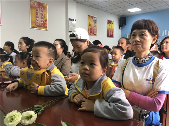 活动中,小朋友观看了关于消防的卡通动画片,消防员用生动而又专业的术语向小朋友介绍了消防车辆和一些随车器材装备。