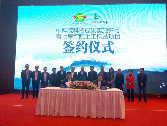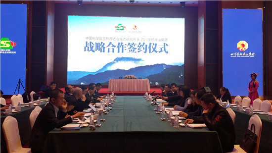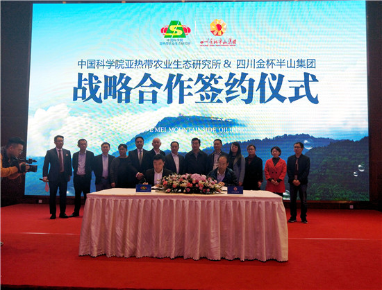 四川新闻网眉山11月5日讯(洪小社 文/图) 11月3日,中国科学院亚热带农业生态研究所与四川金杯半山集团战略合作签约仪式和中国科学院技术成果实施许可暨七里坪院士工作站项目协议签约仪式在四川洪雅七里坪国际会展中心举行。中国科学院亚热带农业生态研究所科技处副处长何寻阳,中国科学院专家、博士生导师吴信,洪雅县委副书记王晨曦,金杯半山集团董事局主席金杯,洪雅县相关部门、金杯半山集团相关负责人等参加签约仪式。