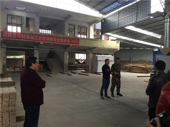 四川新闻网眉山12月6日讯(车慧德 郑丽霞 文/图)12月5日,洪雅县林业局和洪雅县消防大队在洪川镇祝山村腾达木制品厂召开洪雅县木材深加工企业消防安全现场培训会,进一步推进木材加工“散乱污”企业整治。26家深加工企业负责人参加会议。