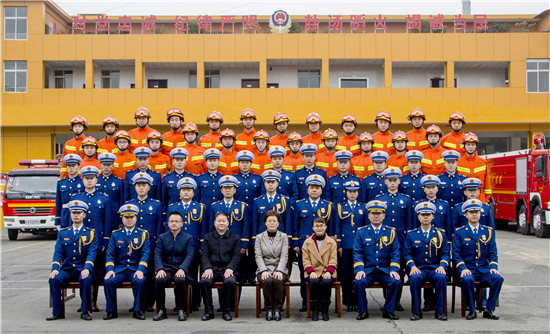 仪式结束后,与会领导与全体消防指战员和专职消防员代表合影留念。