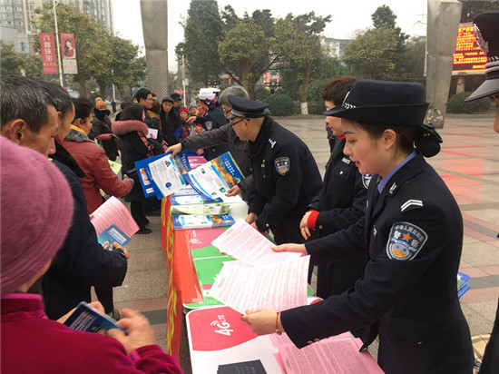 四川新闻网眉山1月10日讯(余欢 底惠 文/图)1月10日,洪雅消防大队根据县公安局的统一部署要求,在洪雅县生态广场组织开展了以“警民牵手110,共创平安迎大庆”为主题的集中宣传活动,洪雅消防大队以此次活动为契机掀起冬防宣传工作热潮。