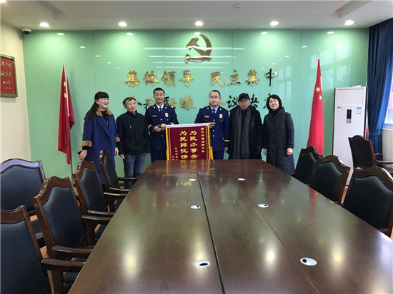 四川新闻网眉山1月10日讯(朱林玉 文/图)1月10日,仁寿县政府人员及欧洲街业主将一面印着“为民办事关怀备至 为民排忧情深似海”的锦旗送到仁寿县消防救援大队手中,以表达他们对大队积极整治欧洲街隐患的感谢之情。