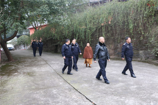 四川新闻网眉山1月22日讯(徐雅兵 卞美旋 文/图)为确保“冬攻”专项行动纵深推进,1月21日,洪雅县人民政府副县长、公安局长潘峰率县局治安、特警、巡警、消防、交警、洪川派出所等警种、部门负责人,深入洪川镇慈云寺检查指导春节期间寺庙安全管理工作。