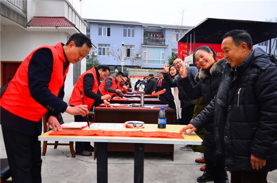 男声独唱、群舞表演、魔术等节目精彩纷呈,让现场观众享受了一顿文化大餐,赢得了阵阵掌声。活动现场,书法家们现场挥毫,为当地群众赠送春联。