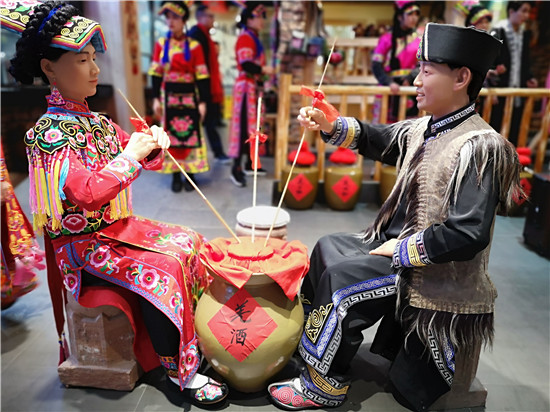 四川新闻网眉山1月24日讯(郑佳洁 文/图)“清亮亮的咂酒唉,依呀勒送勒哦,依呀勒松勒哟……”1月24日,眉山第一家羌族文化的民族餐厅“羌族味道”正式开业。热情的祝酒歌配上羌红,让大家感受到浓浓青羌文化气息。