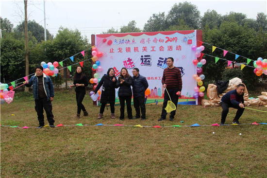 四川新闻网眉山1月26日讯 为喜迎新年,丰富干部职工的精神文化生活,洪雅县止戈镇机关工会于1月24日前往和平乡村酒店开展主题为“运动快乐,携手奔向2019”职工趣味运动会。