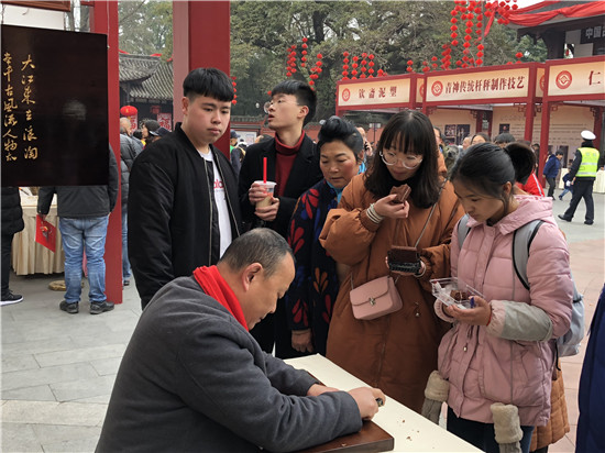 四川新闻网眉山1月27日讯(黄翼 陈惠莘 图/文)为弘扬传统文化,传承工匠精神,展示“非遗”魅力,丰富人民群众文化生活。2019年1月24日至26日上下午,东坡区心连心艺术团在三苏祠门口的启贤广场,为“纪念苏东坡诞辰982周年寿苏会”暨“眉山市第二届民间文化技艺广场汇活动”助力,进行为期3天的文艺演出。东坡区文化遗产中心组织非遗项目参加展出。