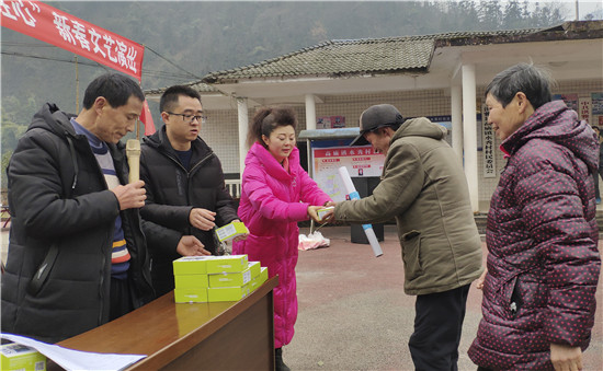 为高庙镇水秀村贫困群众送去春联、迎春挂历