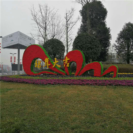 四川新闻网眉山2月1日讯(喻姣 文/图)为营造欢乐祥和的节日氛围,洪雅县林业局(园林所)对全县主要城市景观节点,游客中心、金马绿地、生态广场、龙吟绿地、乐雅高速出口、旧大桥转盘绿地等地营造春节氛围,结合“猪年迎春祝福”和“创建国家园林县城”两个主题设置景观标志,六组鲜花屏风,两万多盆时令鲜花进行节日装饰,营造猪年新气象。
