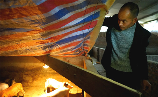 蔡忠斌查看生猪情况