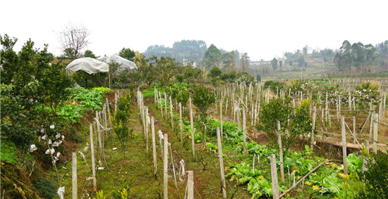 蔡忠斌承包了春风村30多亩土地,种上了15亩藤椒和15亩柑橘。他还在柑橘地里套种上了葡萄,又在藤椒地里套种了茶叶。通过这种套种的方式,有效利用了田地资源,增加了经济收入。除此之外,蔡忠斌还喂养了几十头生猪,产生的粪便进入化粪池、沼气池发酵,沼液浇灌果、蔬,既保证了农业有机种植用肥,又解决了环境污染问题,实现了能源再生利用,达到了污染的零排放,使养殖业与种植业形成了良性循环。