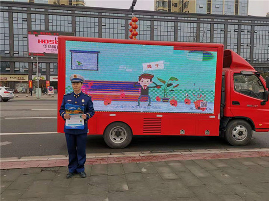 消防宣教人员利用车载的多媒体播放功能播放各类视频,向群众讲解防火、火灾逃生和扑灭初起火灾方法等知识,并现场发送防火宣传资料,用简单易懂的语言为过往群众现场讲解有关的消防常识,针对群众当前季节用火用电注意事项等相关问题进行了现场答疑。并结合宣传资料,穿插简单的火灾案例,向群众们进行了耐心讲解,传授大家正确火灾报警、火场正确逃生自救、电器初期火灾的正确处置及灭火器的使用等基本常识。