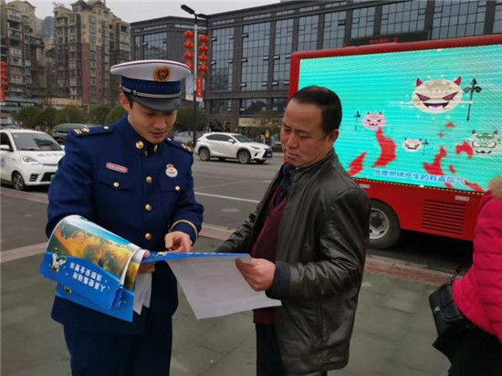 四川新闻网眉山2月27日讯(王婷婷 文/图)为丰富消防宣传培训形式,提高消防宣传工作的覆盖率,营造良好的消防安全环境。2月27日上午,洪雅消防大队借助多功能消防宣传车走进洪雅生态广场开展消防宣传活动。