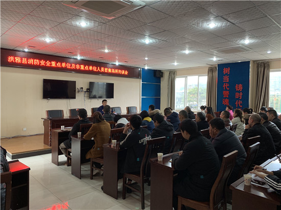 四川新闻网眉山3月15日讯(余娟 文/图)为做好辖区消防安全工作,强化消防安全重点单位、人员密集场所管理,确保我县火灾形势总体平稳,3月15日上午,洪雅消防大队组织召开全县重点单位及非重点单位人员密集场所约谈会。