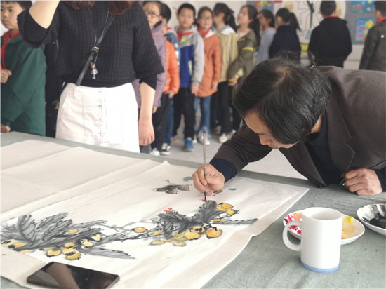 随后,到场的书画家们挥毫泼墨,现场献艺,一幅幅精美的书画作品呈现在师生面前,给参加观摩的师生巨大的艺术视觉冲击。
