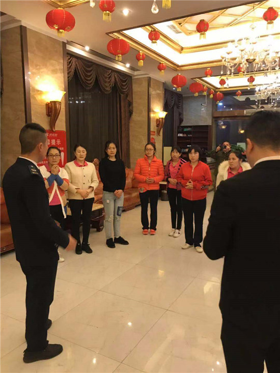 培训中,宣传人员首先结合近年来全国各地发生的各类火灾案例,理论联系实际,通过浅显易懂的语言,用“血的教训”警示大家要高度重视消防安全,不断增强消防安全意识,加强消防安全管理,积极主动做好单位的消防安全工作。同时,组织员工对灭火器以及室内消火栓进行使用,针对如何连接水枪、水带进行了详细的讲解,确保单位每位员工都学会灭火器和消火栓的使用。随后,酒店宣传人员指导酒店员工进行疏散逃生演练,演练假设酒店会议室发生火灾,发现火情后,酒店微型消防站队员第一时间赶赴火场,利用室内消火栓对火情进行扑救,疏散引导员挥舞着荧光棒,为参训人员指引安全出口的方向,并不断提醒参训人员要弯腰捂鼻,保持秩序。