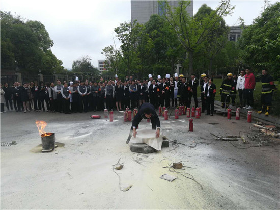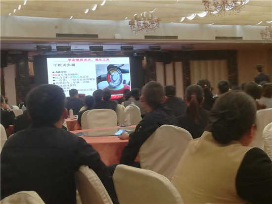 活动中,酒店负责人首先结合全国各地近年来发生的宾馆酒店火灾案例,生动具体地阐述了宾馆酒店火灾预防的重要性和举办此次消防培训的必要性,重点讲解了火灾的原因、火灾防范、火灾扑救技巧和火灾逃生自救等消防安全知识。同时,针对酒店火灾发生的特点,从如何排查整改火灾隐患,如何组织人员疏散逃生等基本消防知识讲起,并着重讲解了酒店内有关消防设施的性能、灭火器材的使用方法等知识和技能,并督促酒店落实消防安全责任,对酒店内灭火器配置情况、逃生通道畅通情况以及应急照明和疏散指示标志是否损坏等情况进行自查自纠,真正做到防患于未然。随后,酒店负责人还组织参训员工进行了灭火演练,并现场操作演示了如何正确使用灭火器扑救初起火灾,全体参训人员轮番上阵,切身体验使用灭火器扑灭初期火灾。