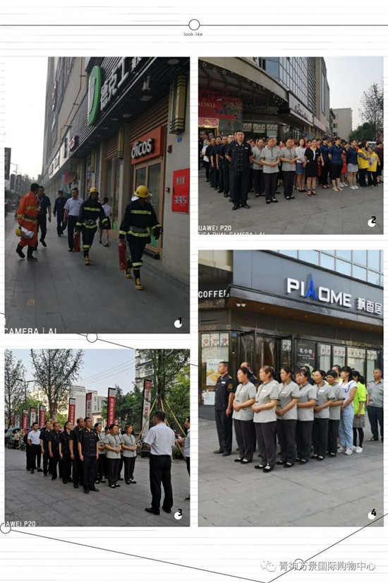“着火啦!”此次演练模拟起火点设立在万景商业楼东侧二楼出口处,最先发现火灾的人员迅速报警,并有序组织疏散逃生。消控室接到警报后迅速对火灾实情进行确认,在启动单位应急预案的同时,通知本单位微型消防站进入紧急应急状态。相关人员接到通知后迅速赶往火灾现场实施初期空控制。"火灾"发生后,商场消防应急系统全面联动,防排烟系统自动启动,防火卷帘下降,电梯紧急迫降到首层,伴随着声光报警,商场其余楼层人员迅速用湿毛巾和衣物捂住口鼻,在工作人员的指挥下,从各个安全通道有序撤离到安全地点。