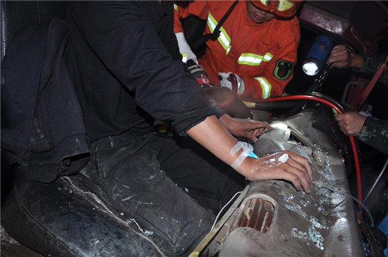 20时47分,消防救援人员到达现场后发现货车车头被撞得“面目全非”,周围聚集群众众多,救援人员第一时间实施警戒,疏散现场围观群众确保现场安全。经现场勘察和询问知情人得知,挖掘机司机无事,但货车副驾驶一人左腿被卡在车内无法动弹,已经出现肿胀充血现象,情况十分危急。现场指挥员立即下达展开救援命令,消防员一边稳定被困人员的情绪,一边利用液压剪扩器、撑顶器等救援装备营救被困者,撑顶,扩张,剪切,支撑,固定,观察,再撑顶,再扩张……救援人员一刻不停,在保证被困人员绝对安全的前提下,救援空间被成功扩大,被困人员所卡的位置出现松动,消防员迅速利用液压剪扩器进一步扩大救援空间。21时03分,被困人员被成功救出,并移交现场120进行治疗。(青神消防大队供稿)