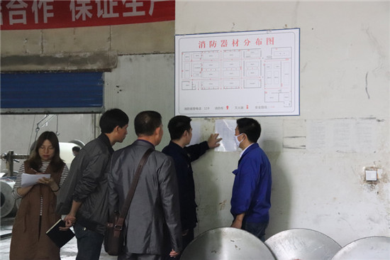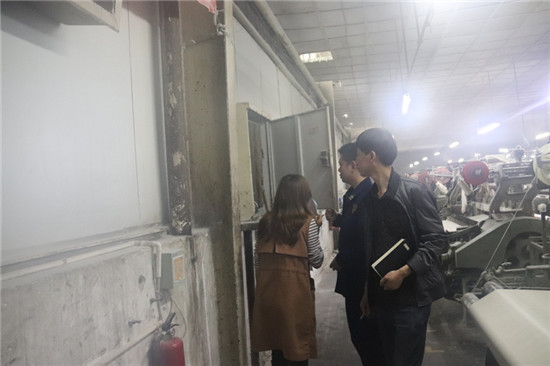 检查组一行来到四川省亚鑫纺织有限公司、青神裕华纺织有限责任公司,深入厂区各个车间,对消防安全管理制度进行了解查看,耐心听取了厂区负责人关于落实日常消防安全管理、消防安全检查巡查、员工消防安全培训等工作汇报。