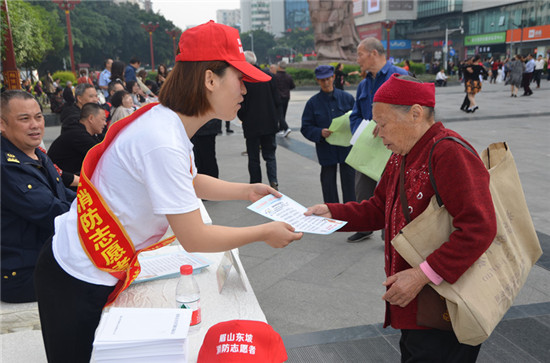 四川新闻网眉山5月10日讯(周涛 文/图)今年5月12日是全国第十一个“防灾减灾日”,为切实做好“防灾减灾日”宣传活动,普及推广全民防灾减灾知识,5月10日,东坡消防大队在三苏雕像广场开展防灾减灾日消防宣传活动。