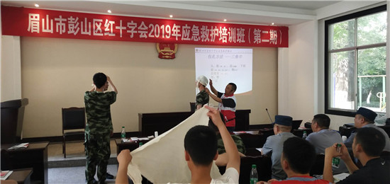 四川新闻网眉山5月17日讯(王蓓 文/图)为切实提高消防官兵在参加救灾和保护人民生命财产安全过程中的自救互救能力,5月16日,彭山区红十字会在区政府四会议室举办应急救护知识培训班,普及应急救护技能,彭山消防大队10余名专职消防救援队员参加了培训学习。此次培训由红十字会高级讲师文杰担任主讲。