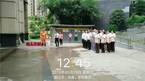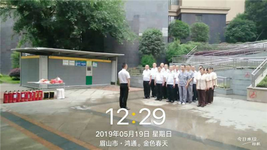 四川新闻网眉山5月21日讯(周涛 文/图)为进一步增强辖区物业单位消防安全意识,提高单位员工的火灾防范和火场逃生自救能力,坚决遏制重特大火灾事故的发生,5月19日,东坡区物业单位金色春天开展消防安全演练。