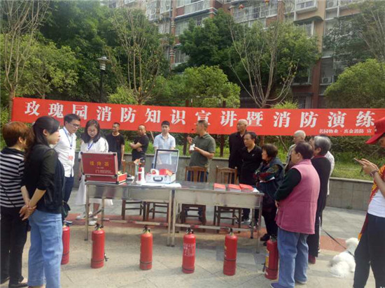 四川新闻网眉山5月22日讯 为进一步加强广大社区居民的消防安全意识,有效提高社区群众发现排除火灾隐患、扑救初起火灾的能力。5月20日,东坡区玫瑰园小区自行组织开展消防安全培训暨消防演练。