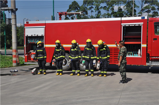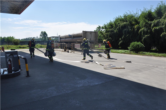 演练开始前,大队培训人员对站内员工详细讲解了加气站的火灾特点,深刻剖析了各类加油加气站火灾发生的原因和教训,并根据加气站的特殊环境讲授火灾防范知识以及火灾逃生自救方法。随后,大队培训人员在加气站负责人的带领下实地熟悉了解了该场所的基本结构,功能分区以及固定消防设施等情况,根据加气站情况模拟站内发生火灾和液化气站储存罐发生火情。当接到作战命令后,消防员迅速开展应急灭火救援演练。整个演练过程参战人员作战任务清晰,战斗行动迅速,紧张有序,处置有力,圆满的完成了此次演练工作。