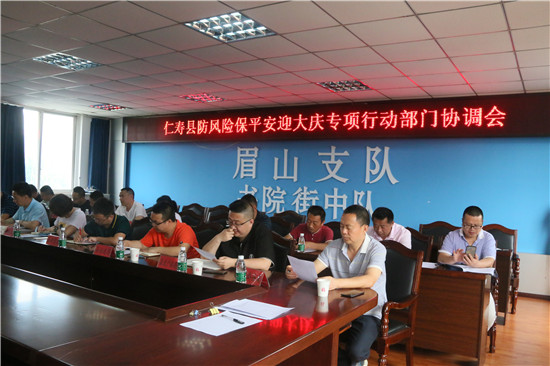 四川新闻网眉山5月23日讯(唐秀 文/图)为认真贯彻省、市安委会关于“防风险保平安迎大庆”消防安全执法检查专项行动的有关要求,有效防范化解重大安全风险,确保全县火灾形势稳定,仁寿县安办组织各部门召开“防风险保平安迎大庆”消防安全执法检查专项行动会议。仁寿县应急管理局、县教体局、县公安局、县民政局等相关部门参加会议。
