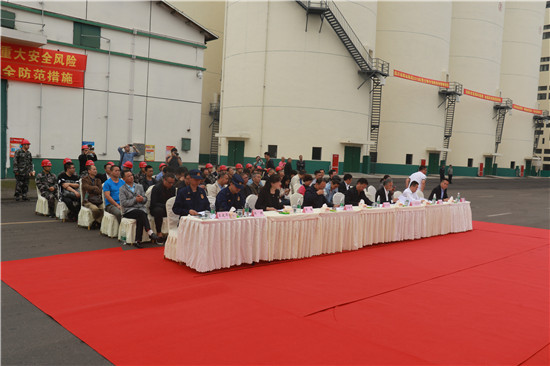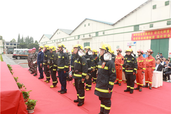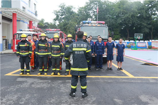 演习前,四川商投集团还举行了2019年“安全生产月”活动启动仪式。(彭山消防大队供稿)