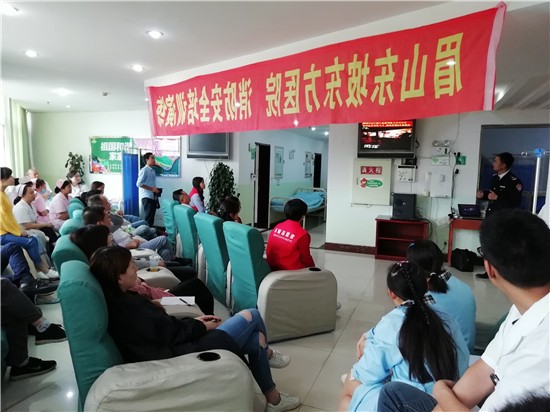 下午2点30分,消防演练三步曲开始,先是由消防安全科警官在医院二楼输液大厅举行消防安全知识培训会,警官结合近几年典型事迹向大家宣讲消防安全的重要性、紧迫性,着重讲解逃生基本方法、自救常识及注意事项。会后全体人员学以致用,实战参加消防逃生、灭火的现场演练,整场演练持续、生动、贴近生活,为险情发生时的及时、科学处置提供有力基础。