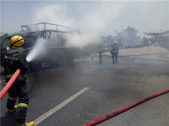 经过近15分钟的紧张处置,现场明火被扑灭,随后消防队员又对起火的部位进行了仔细的冷却降温,确保现场安全。火势熄灭后,该315国道仁美路段很快恢复了正常通行。