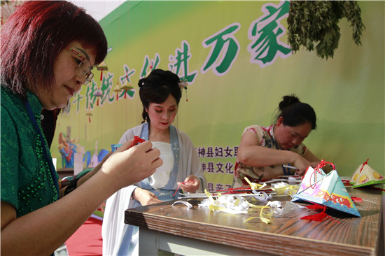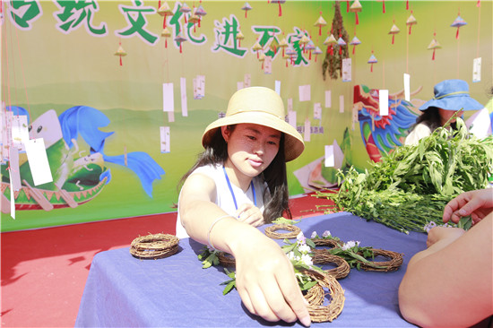 四川新闻网眉山6月3日讯(杨芳 文/图)“少年佳节倍多情,老去谁知感慨生。不效艾符趋习俗,但祈蒲酒话升平(出自哪首诗?)”“清明插柳,端午插什么”…… 6月3日,青神县妇联和青神县文广旅局联合举办“我们的节日—端午传统文化进万家”活动吸引广大的市民前来参与。在端午灯谜前,大家开动脑筋,冥思苦想,“触摸”传统文化,感受文化魅力。