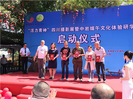 四川新闻网眉山6月3日讯(肖倩 文/图)6月3日,“活力青神”四川摄影展暨中岩端午文化体验研学游启动仪式在青神县中岩寺风景区举行。
